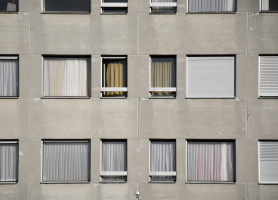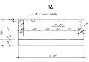Beschreibung | Brüstungselement. Stahlbeton-Fertigteil, selbsttragende Fassade, aussen: Sichtbeton bewittert, innen: Putz/Tapete. Zum Teil mit innenliegenden Aussparumgen (3 cm) für vormalige Korkdämmung (die Dämmung wird vor dem Wiedereinbau entfernt). | |