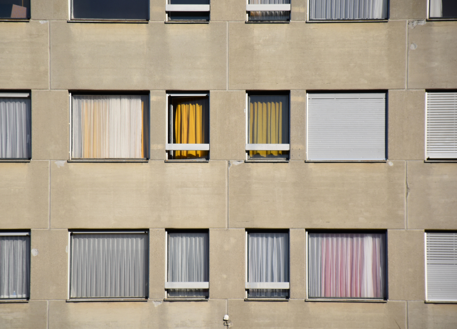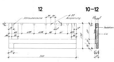 Beschreibung | Brüstungselement. Stahlbeton-Fertigteil, selbsttragende Fassade, aussen: Sichtbeton bewittert, innen: Putz/Tapete. Mit innenliegenden Aussparumgen (3 cm) für vormalige Korkdämmung (die Dämmung wird vor dem Wiedereinbau entfernt). | |