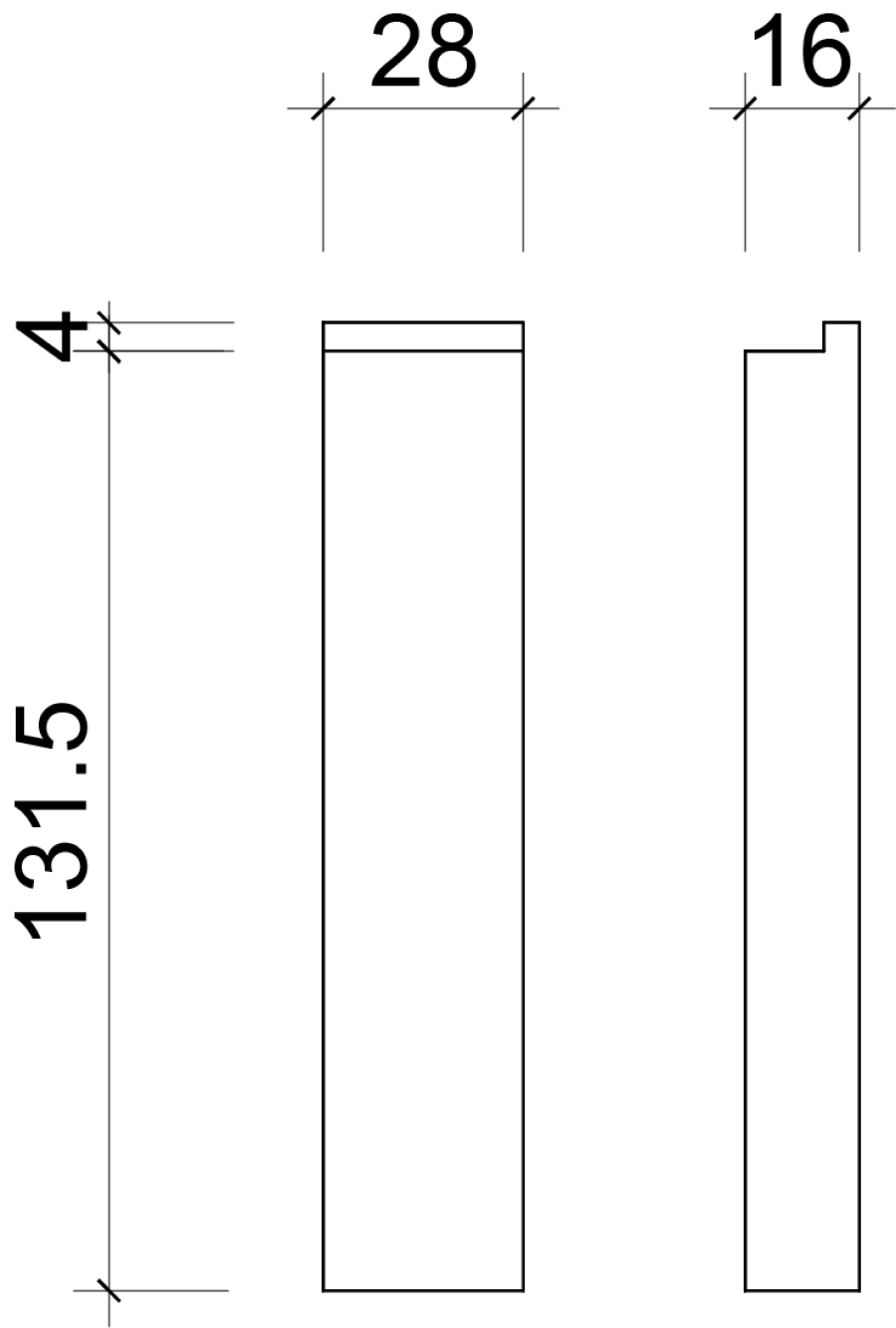 Beschreibung | Leibungselement. Stahlbeton-Fertigteil, selbsttragende Fassade, Oberfläche aussen: Sichtbeton bewittert, innen: Putz/Tapete. (Ohne Aussparung für Korkdämmung). | |