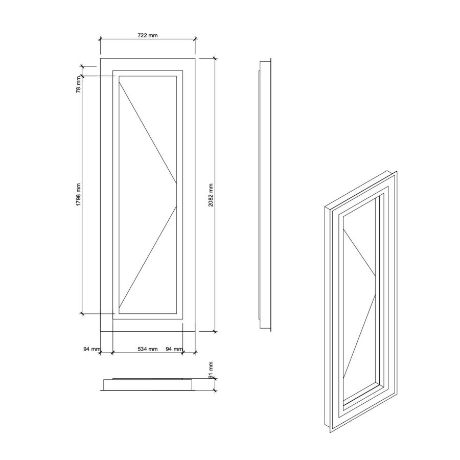 Dimensionen | 722x2082x91 mm | |